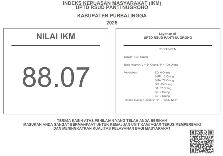 Berikut adalah nilai IKM berdasarkan aplikasi ALPUKAT atau Aplikasi Layanan Survey Kepuasan Masyarakat milik Pemerintah Kabupaten Purbalingga. ALPUKAT Digunakan untuk melakukan survey kepuasan masyarakat,terhadap layanan yang diberikan oleh perangkat daerah di lingkungan pemerintah kabupaten purbalingga. Sebagai salah satu upaya peningkatan kualitas pelayanan publik sesuai Permen PAN & RB No. 14 Tahun 2017 tentang pedoman penyusunan survey kepuasan masyarakat unit penyelenggara pelayanan publik.